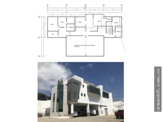 unidades de sanitarios, una sala de juntas con muro movil sono aislante de 128.96 metros